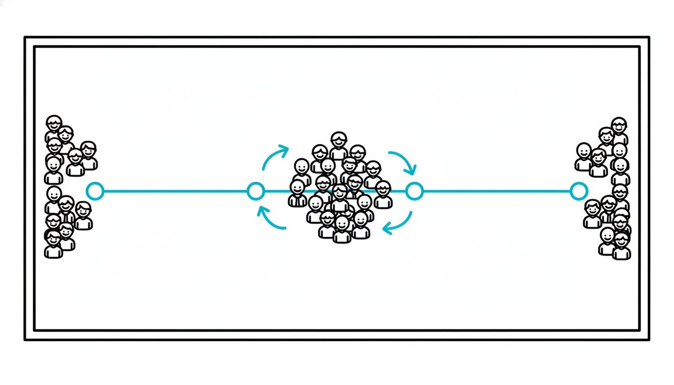 Challenge: Everyone clumps in the middle (neutral) to avoid commitment. Solution: Encourage spread: "I need more diversity! If you're even slightly leaning one way, move in that direction. The middle should only be genuine 'I don't know.'"
