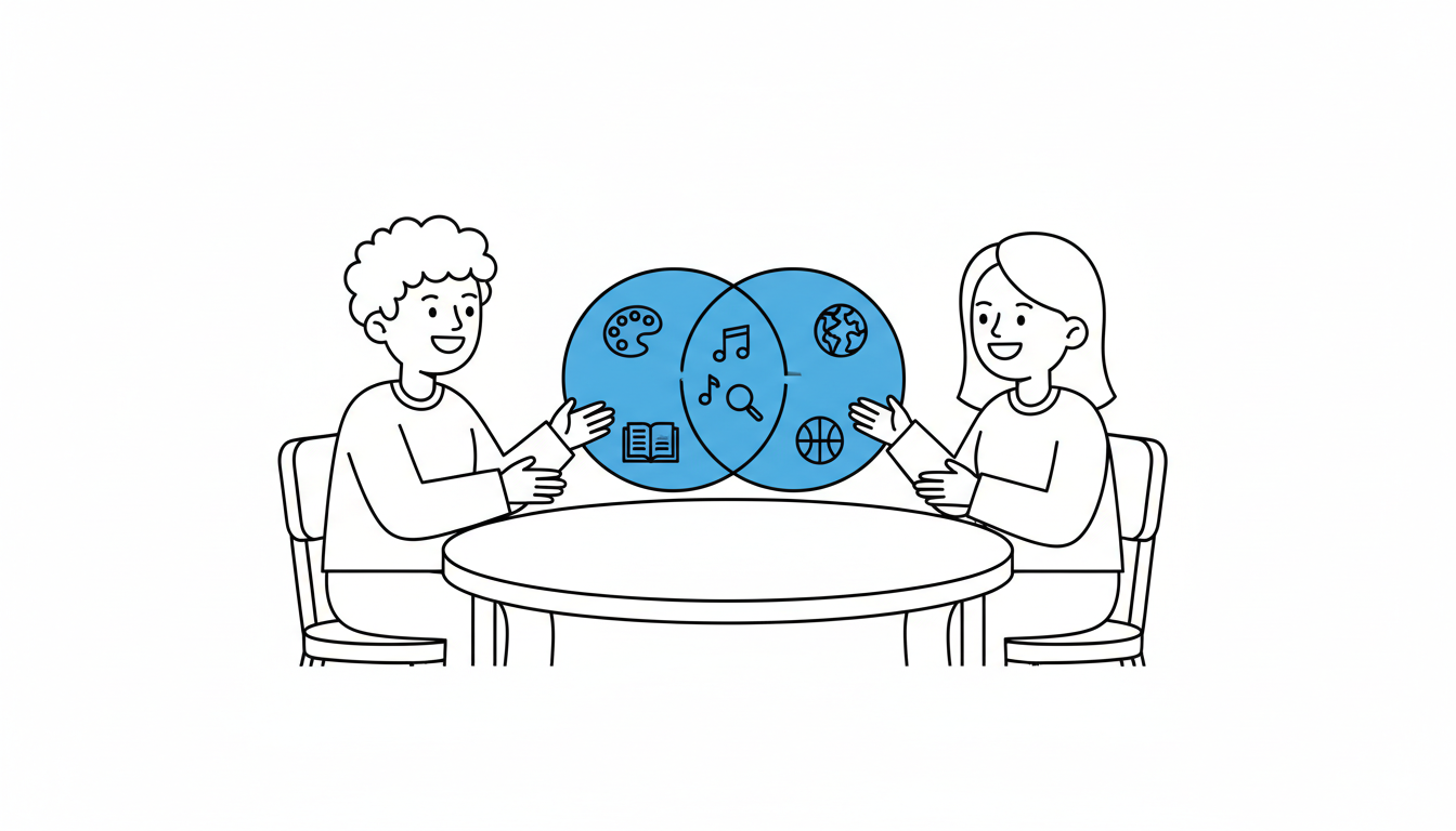 - Elementary (K-5): May need concrete prompts: "Do you have pets? Siblings? Favorite colors?" Use a graphic organizer (Venn diagram)
