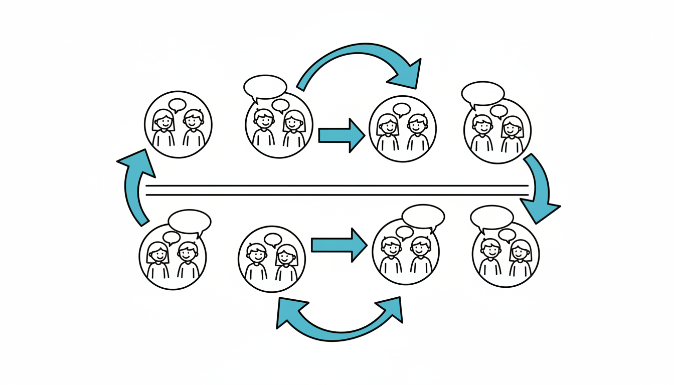 During Round Two: [Circulate and listen. You might hear: "My first partner said..." or "We realized that..." This meta-conversation is exactly what you want.]