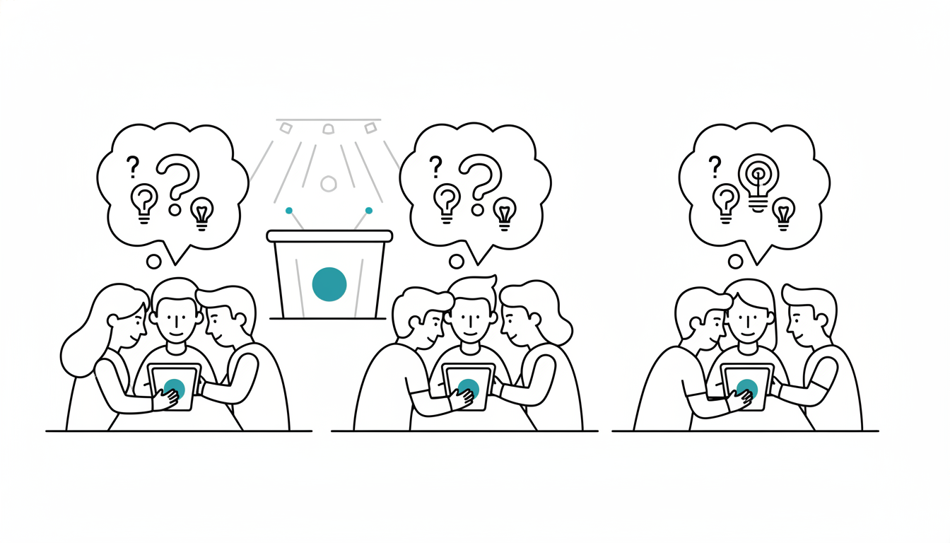 Setup: "Form teams of four. We're doing Team Trivia. I'll ask questions about what we've learned. Your team must discuss and agree on ONE answer—everyone participates. When I say 'reveal,' hold up your answer. Correct answers earn a point."
