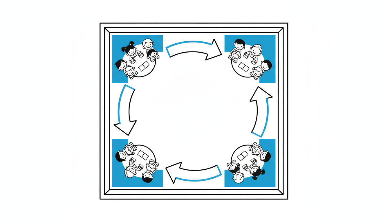 During: [Observes movement] "Corners 1 and 3 have most students... Corner 2 is empty—good! Corner 3, why did you choose that answer?"