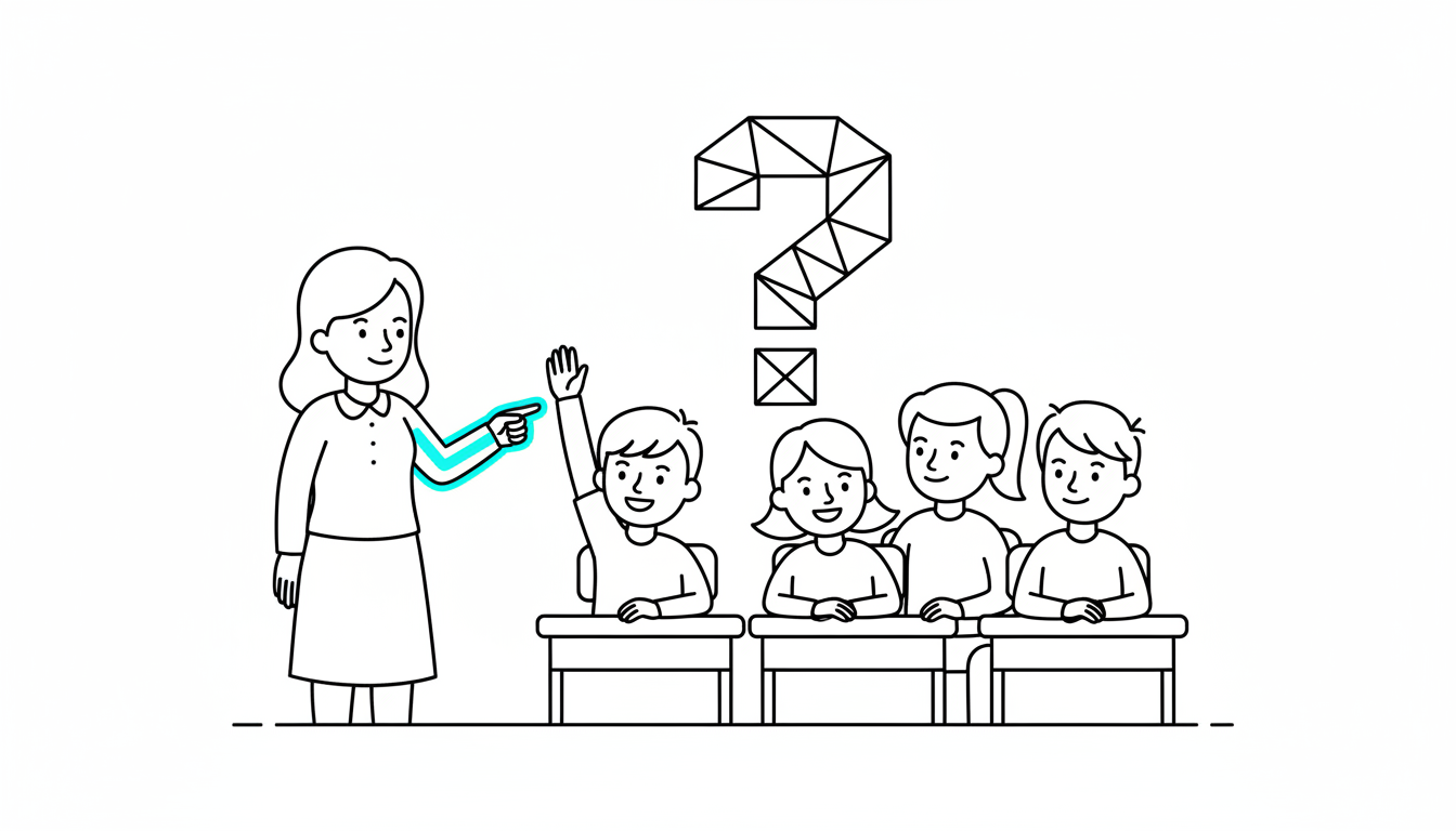 Selection methods: Popsicle sticks with names, random name generator, seating chart grid, rotating pattern • Scaffolds: Think-Pair before calling (discuss with partner first), phone-a-friend (student can ask peer for help), partial credit ("Give me just one word related to the answer") • Ages: K-5: High scaffolding (pair-share first); 6-12: Direct cold call with think time; College: Socratic cold call sequence
