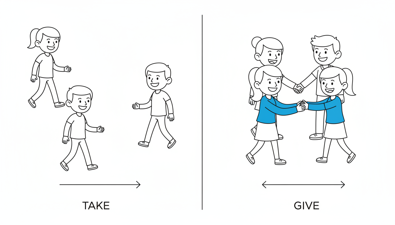 - Connect: Use this as a metaphor for collaborative work: "Sometimes you work alone (Take), sometimes you partner up (Give). Both are valuable. Know when each is needed."