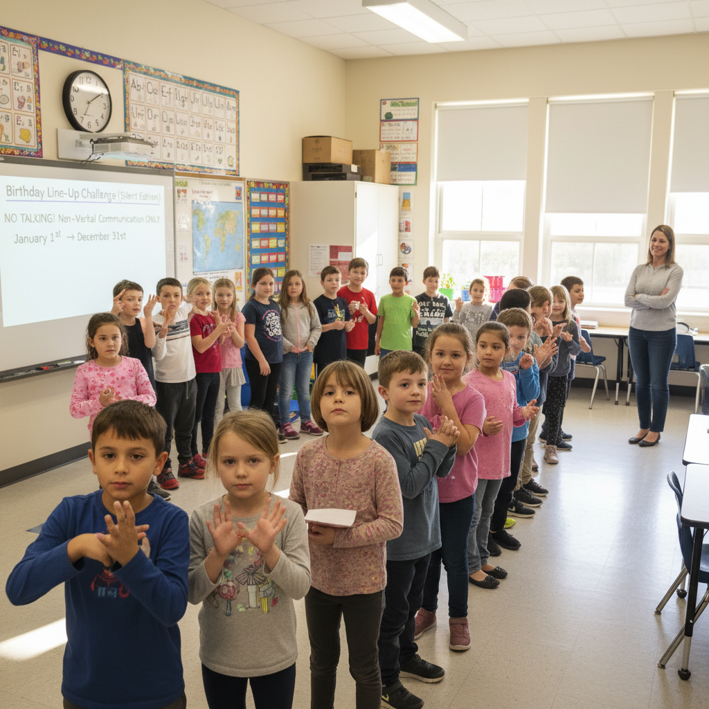 - Follow-up: "Speed record"—track how fast class can complete silent line-up; challenge them to beat their record