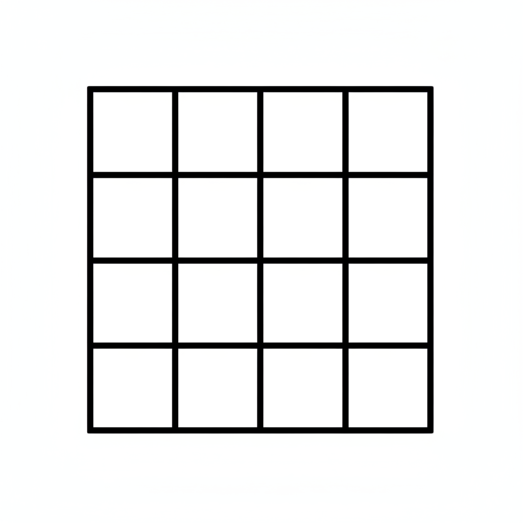 - DRAW THE GRID (10 seconds) — Draw a simple 4x4 grid on the board (16 small unit squares, like a larger tic-tac-toe board). Clean, clear lines.